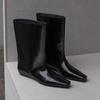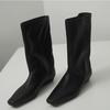 Cowhide version~ autumn and winter new simple square head versatile temperament low heel knight boots women's sleeve medium boots women's