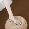 Square head crystal high heel cool slippers women's 2025 summer French temperament sexy rhinestone open toe wearing silver sandals