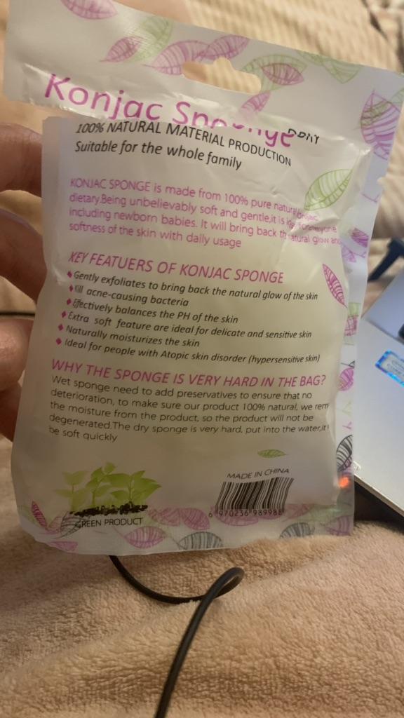 A esponja de konjac depois de molhada torna-se macia e não agride a pele! Pode ser usada só com água mas também uso com gel de limpeza, sendo que basta colocar apenas uma pequena gota do gel pois faz bastante espuma.