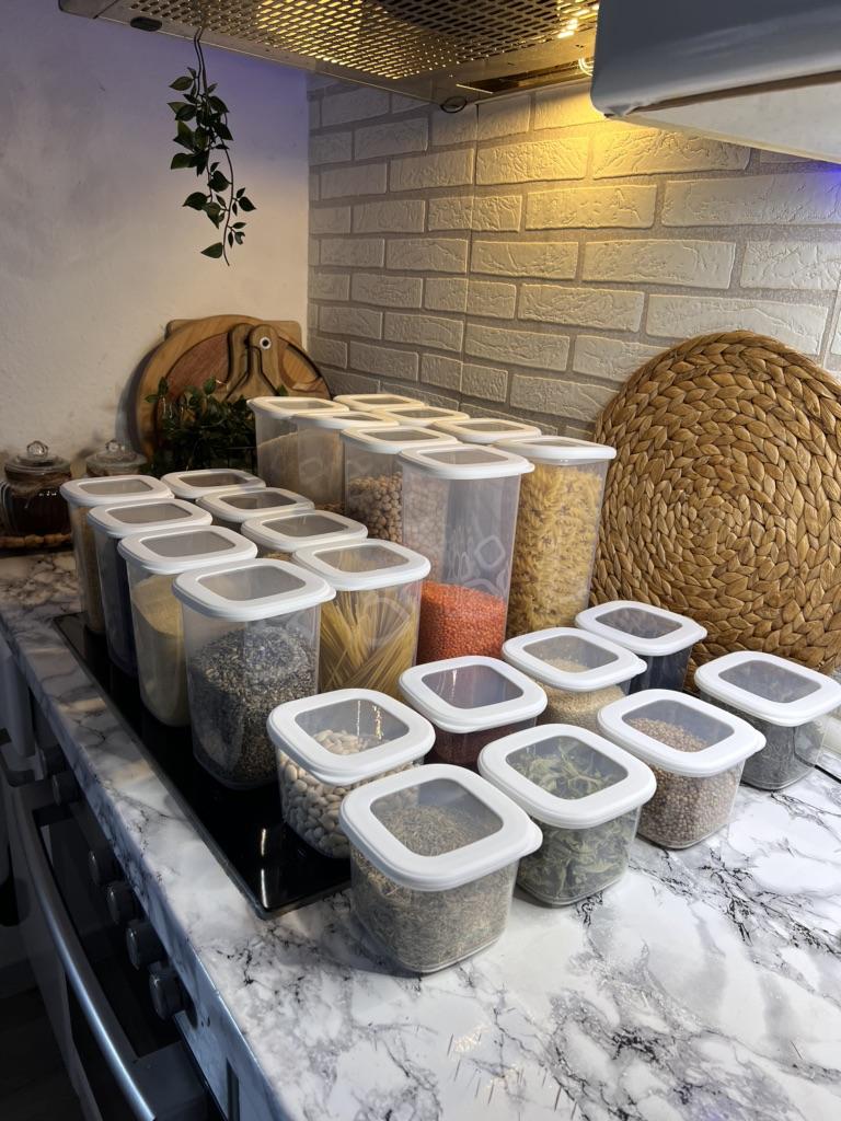 Čtvercový zásobní zásobník Sada 24 ks 8x550 ml 8x1200ml 8x1750 ml Úložný zásobník