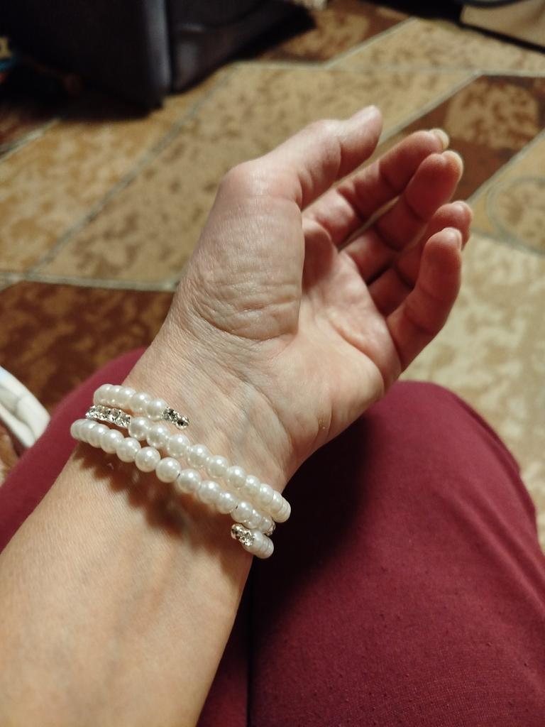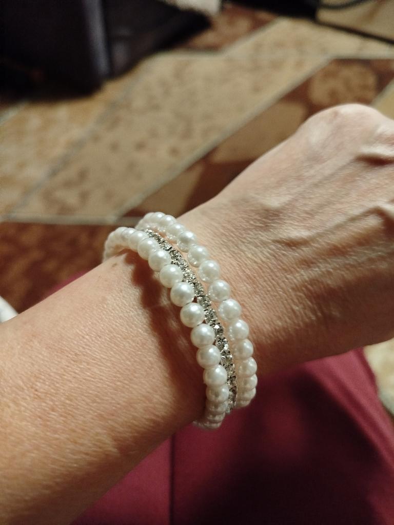 Dámský elegantní náramek natahovací náramek s bílými umělými perlami