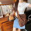 Shoulder Bag Women's Large Capacity Pleated Folding Organ Bag College Class Wool Knit Leopard Print Bag