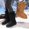 Zimní kozačky do půli lýtka Hrubý plyš Hrubá podrážka Protiskluzové Módní Jednobarevné Knoflík Nové Dámské Boty Klasické Retro Hnědé Dlouhé Kozačky