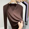 V-neck Long-sleeved T-shirt for Women In Spring and Autumn, New Design, Discreet Bottoming Shirt, Loose and Versatile Top In Early Spring