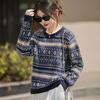 Dámský podzimní a zimní žakárový pletený vintage pulovr s kulatým výstřihem