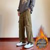 Winter Men's Cargo Pants Large Size Outdoor Sports Pants Multi-pocket Loose Straight Men's Casual Pants Fleece Lining