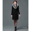 Kožená bunda Dámská zimní vycpaná zesílený dlouhý kabát Velký límec do vlasů Úzký tenký, větruodolný kožený dlouhý kabát