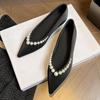 Ladies Summer Footwear Pointed Toe Flat Flats Shoes For Women 2024 Pearl Black Lastest Beau Today Social Chic Point Hot A E Shoe