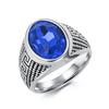 Pánský vintage prsten s kamenem, signetový prsten s rytým písmenem, hypoalergenní titanový prsten, modrý, velikost 7