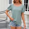 Dámské jarní a letní nové tričko s výstřihem do V, bublinkovými rukávy, žakárové, volné, s krátkým rukávem