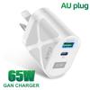 65W Gan Charger for Australia New Zealand AU Plug PD 33W Fast Charger QC 3.0 USB Adapter for iPhone 15 14 13 Pro Max Samsung S23