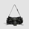 Commuter Versatile Motorcycle Single-shoulder Women's Bag with Rivets, Unique Pleats, Underarm Crossbody Bag