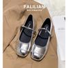 Silver glossy single shoes women's 2024 spring new Korean version square head flat bottom shallow mouth soft sole Doudou shoes small leather shoes