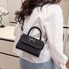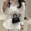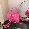 PU Leather Alligator Pattern Small Square Handbag Bow Design Women's Solid Color Fashion Shoulder Crossbody Bag