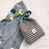 Canvas Bag Women's New Style Casual Contrast Color Plaid One Shoulder Cloth Bag College Student Literary Commuter Tote Bag