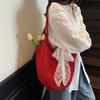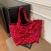 2025 spring and summer new mesh shoulder bag fairy wind lotus leaf edge handbag female vacation sewn chiffon tote bag