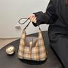 Autumn woolen plaid large-capacity bag women's 2025 new retro tote bag versatile casual backpack