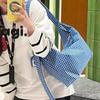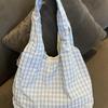 Canvas bag, shoulder bag, messenger bag, cloth bag, plaid, blue.