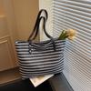 Premium black and white striped tote bag woven large capacity shoulder women's bag lazy wind lightweight vacation bag shopping bag