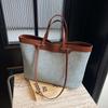 New simple casual large-capacity linen handbag fashion trend contrasting color shoulder bag commuter tote bag