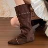 Ladies Mid Calf Shoes Autumn Women's Half High Boots New In Pointed Toe Quality Winter 2025 Novelty Boot Work Designer Luxury Pu