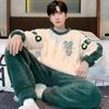 Winter, Coral Fleece, Pajamas, Men's Clothing, Thickened Fleece, Round Neck, Long Sleeved Pants, Suits, Home Clothes