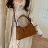 Women Suede Shoulder Bag Fashion Tote Bag Large Capacity Stylish Crossbody Bag Solid Color Casual Tote Purse Daily Commuting Bag