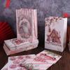 This set features colorful paper bags and sealing stickers designed for Christmas party decorations. Made from durable paper, the bags measure approximately 12*8*20 cm, offering ample space for treats and small gifts. The set includes 12 pink paper bags and 18 sealing stickers, ideal for festive packaging.