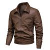 PU Leather Jacket Men's Jacket Trendy Spring and Autumn New Retro Solid Color Lapel Slim Leather Jacket Men