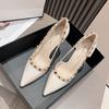 8-8 Sexy pointed high-heeled sandals women's hollow rivet high-heeled shoes women's thin-heeled sandals women's summer