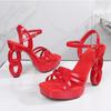 Fashion Super High 12cm Strange Style Heel Designer Women Sandals Patent Leather Ankle-Wrap High Heels Sexy Nightclub Pole Dance Shoes