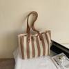 New niche large-capacity striped tote bag, premium lazy fashion commuter versatile canvas bag