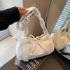 Elegant Travel Embroidery Lace Shoulder Bag Korean Style Large Capacity Women Sweet Tote Bag with Ribbons