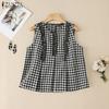 ZANZEA Women Plaid Print Casual Round Neck Sleeveless Blouse