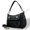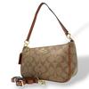 This shoulder bag from Coach's popular Signature line exudes a premium presence thanks to the brand's iconic canvas and leather combination, while the horizontal length silhouette and flap and belt design create a classic look. Its compact form evokes a Y2K vibe and complements trendy styles perfectly.