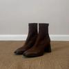 Cowhide version~ Stylish and simple retro thin high-heeled elastic boots women's rear zipper square head leather splicing thin boots