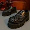 Summer men's sandals hand-woven breathable business dress casual big head leather shoes hollow inner heightening hole shoes