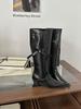2025 new knee boots high boots European and American thin pointed thick high heel belt buckle knight boots women