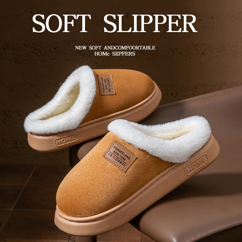 Sticker Cotton Slippers for Women, Fleece-Lined, Outdoor Wear, Non-Slip, Height-Increasing Slippers for Men and Women, Couple Fleece Slippers