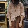 Johnature Frauen Vintage Stickerei Floral Shirts O-Ausschnitt Sieben Ärmel Patchwork Farbe Chinesischen Stil Herbst Lose Shirts