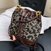 Ρετρό Τσάντα Κουβά με Κορδόνι Λεοπάρ Γυναικεία Μόδα Ευέλικτη Απλή Ξένο Στυλ Μεγάλης Χωρητικότητας Τσάντα Ώμου