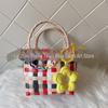 Γυναικεία Υφαντή Καλοκαιρινή Τσάντα Παραλίας: Απλή Πλαστική Τσάντα Χειρός, Μικρός Τετράγωνος Σχεδιασμός για Ψώνια και Παιδιά.