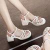 Buckle square head platform sandals summer new square heel open toe cross with high heel sandals women