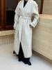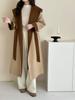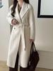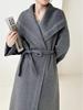 Cloud Floss Women's Double-Faced Wool Coat: Tie-Waist Hooded, Large Lapel, Loose Fit, Thickened Temperament Overcoat.