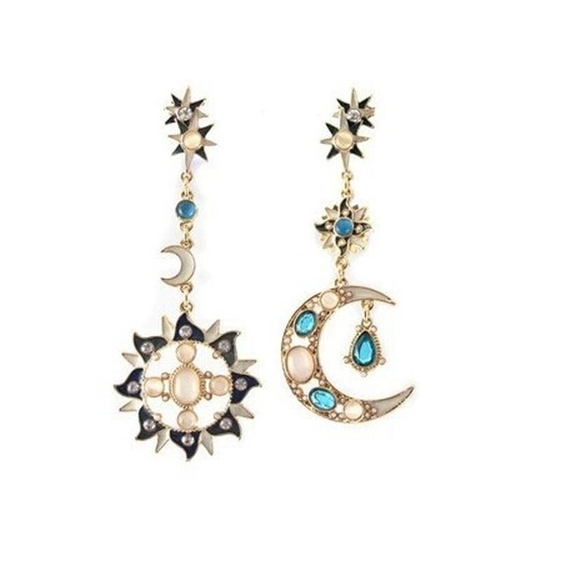 Fashion Star Sun Moon Rhinestone Crystal Stud Dangle Pretty Earrings