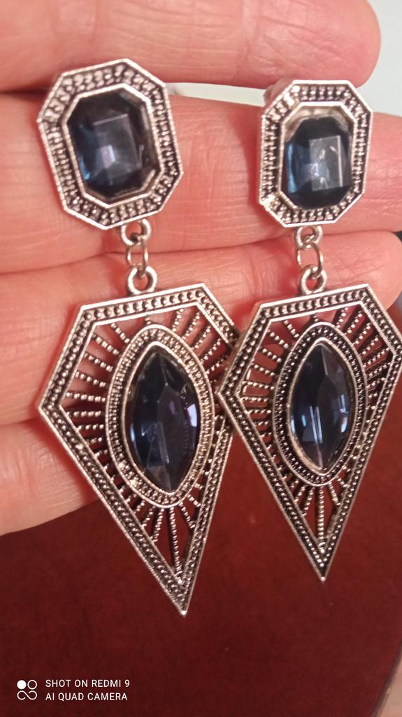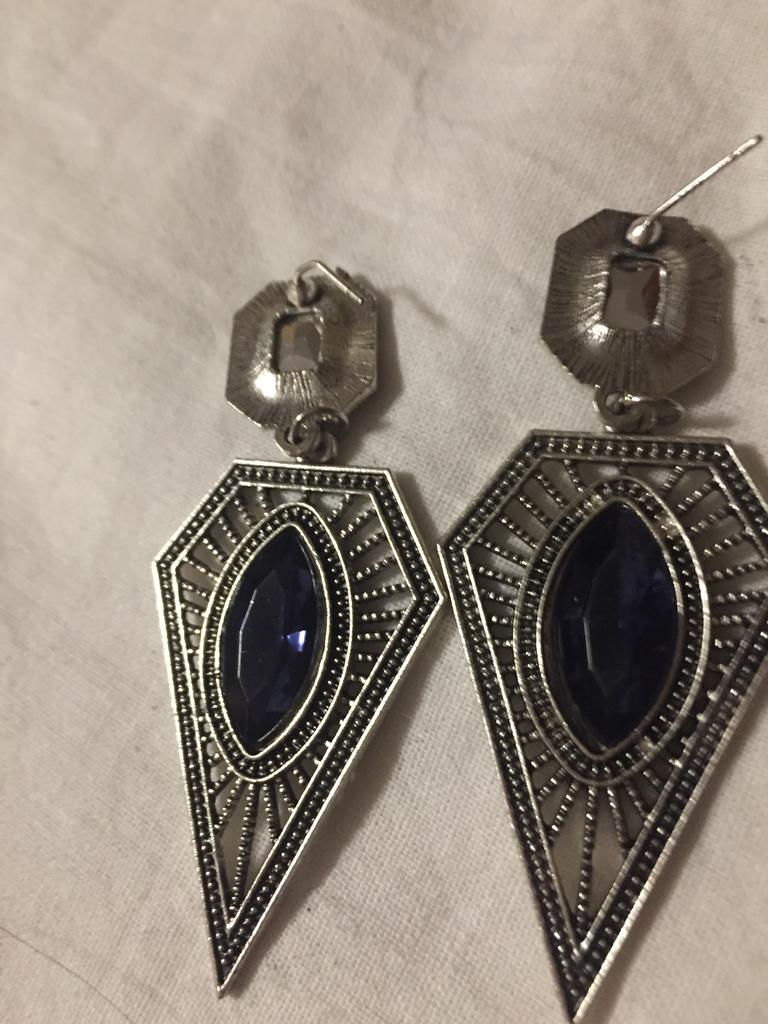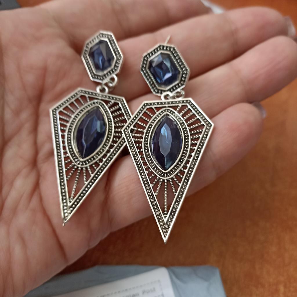 Vintage Women Hollow Triangle Faux Sapphire Earrings Party Wedding Jewelry Gift