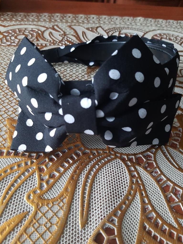 The polka dot fabric is very thick, it's not silk, and the bow is somehow not very big.. But it looks beautiful in your hands.