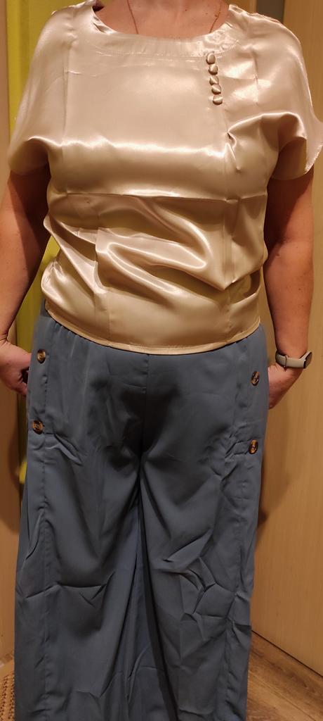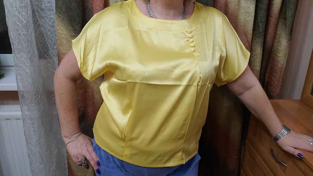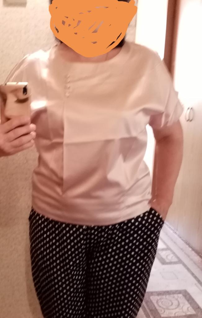 The blouse arrived on time, the seams are smooth, it is unusual that the product is narrowed at the bottom, and does not fall freely. I recommend the seller