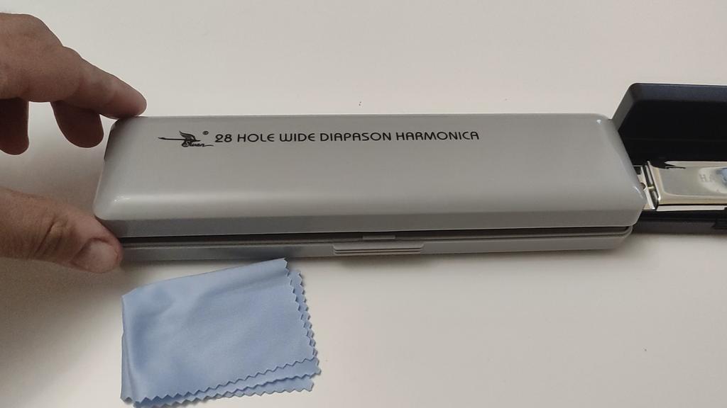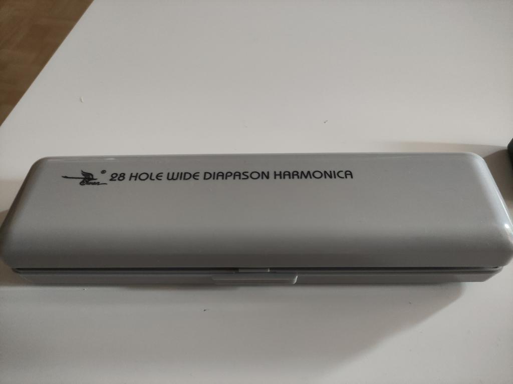 28 Holes Complex Tone Silver Harmonica Diatonic Blues Harp Mouth Organ with Plastic Box for Beginner