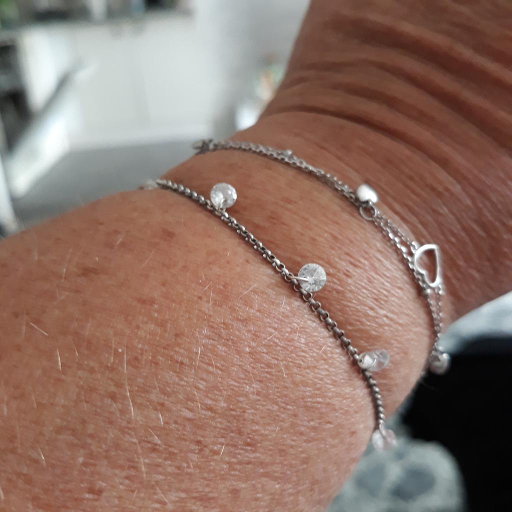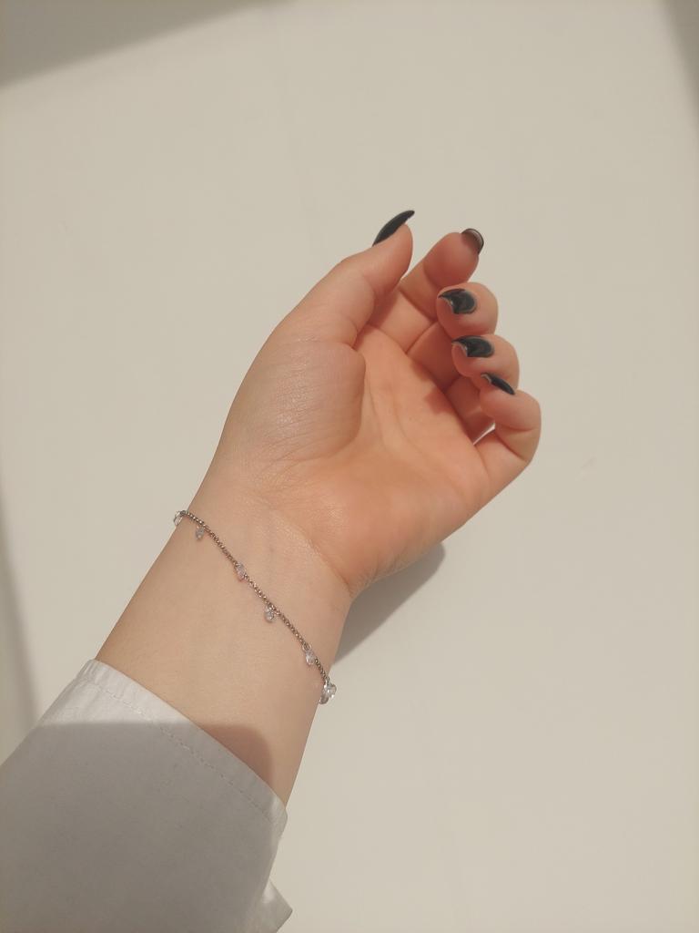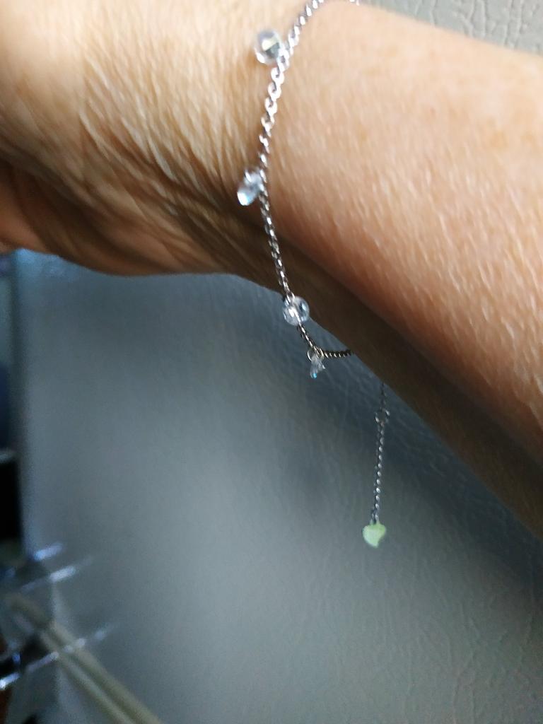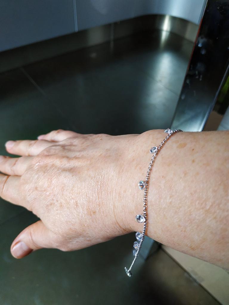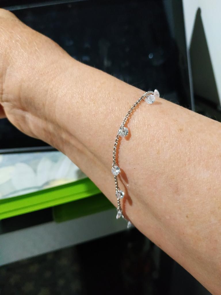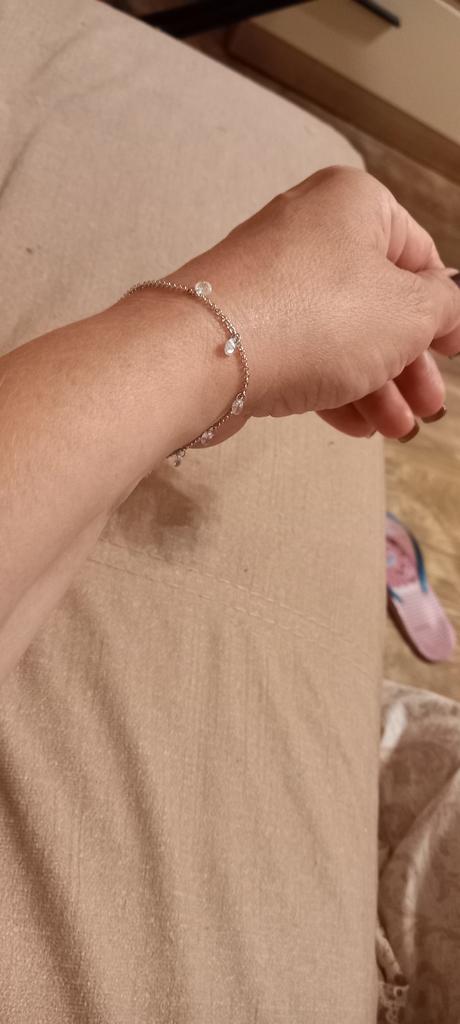 Very delicate bracelet. I ordered a second time. Silver does not darken. The pebbles are overflowing. On the handπ₯. I took it with a necklace.